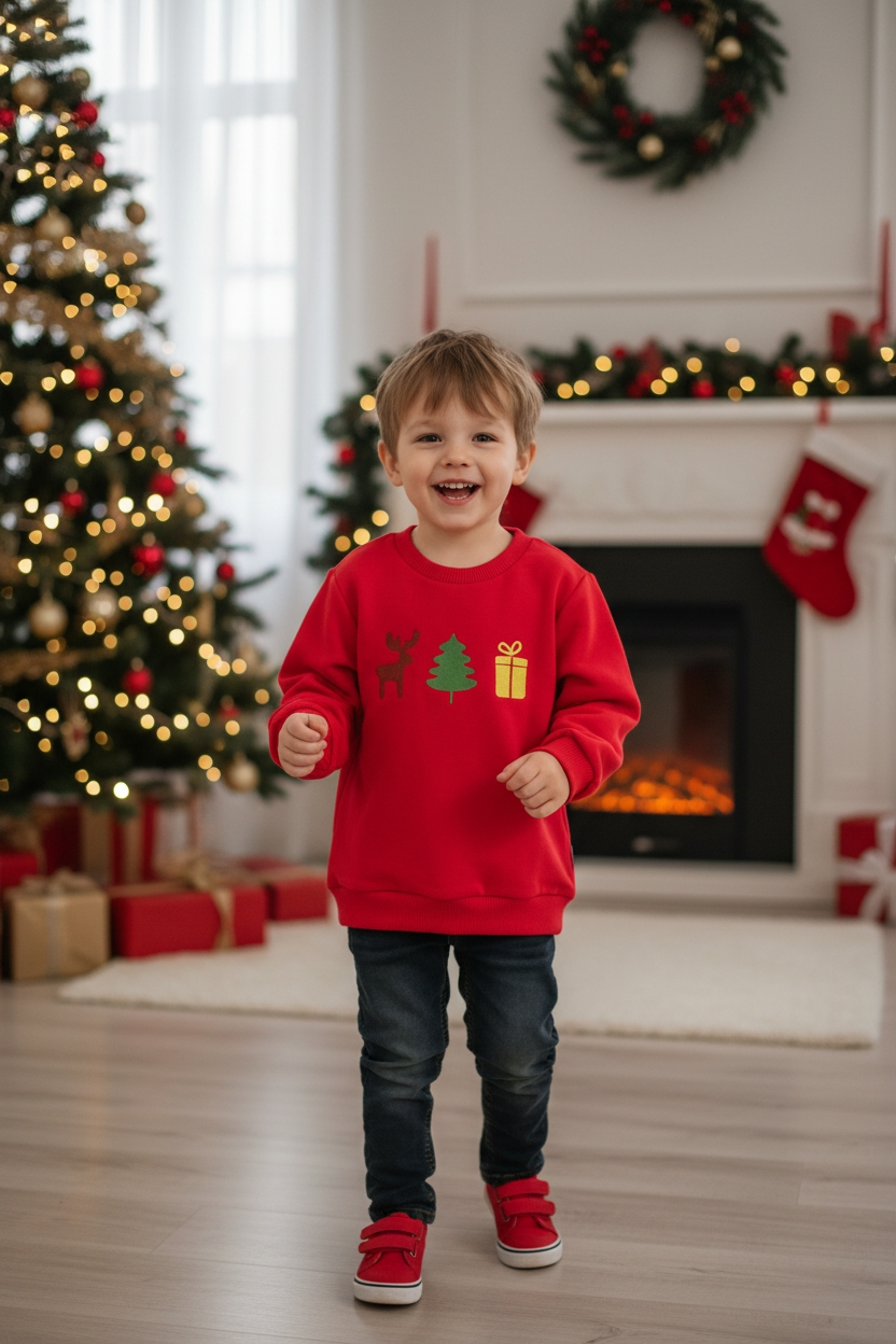 Minkštas ir jaukus vaikiškas džemperis, puikiai tinka kalėdinei nuotaikai sukurti – bet toks pat patogus ir kasdienai. Maloni medžiaga, patogus kirpimas ir žaismingas dizaino užtikrins komfortą visą dieną. Puikus pasirinkimas šventėms ir žiemos sezonui!