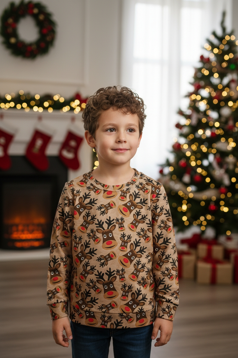 Minkštas ir jaukus vaikiškas džemperis, puikiai tinka kalėdinei nuotaikai sukurti – bet toks pat patogus ir kasdienai. Maloni medžiaga, patogus kirpimas ir žaismingas dizaino užtikrins komfortą visą dieną. Puikus pasirinkimas šventėms ir žiemos sezonui!