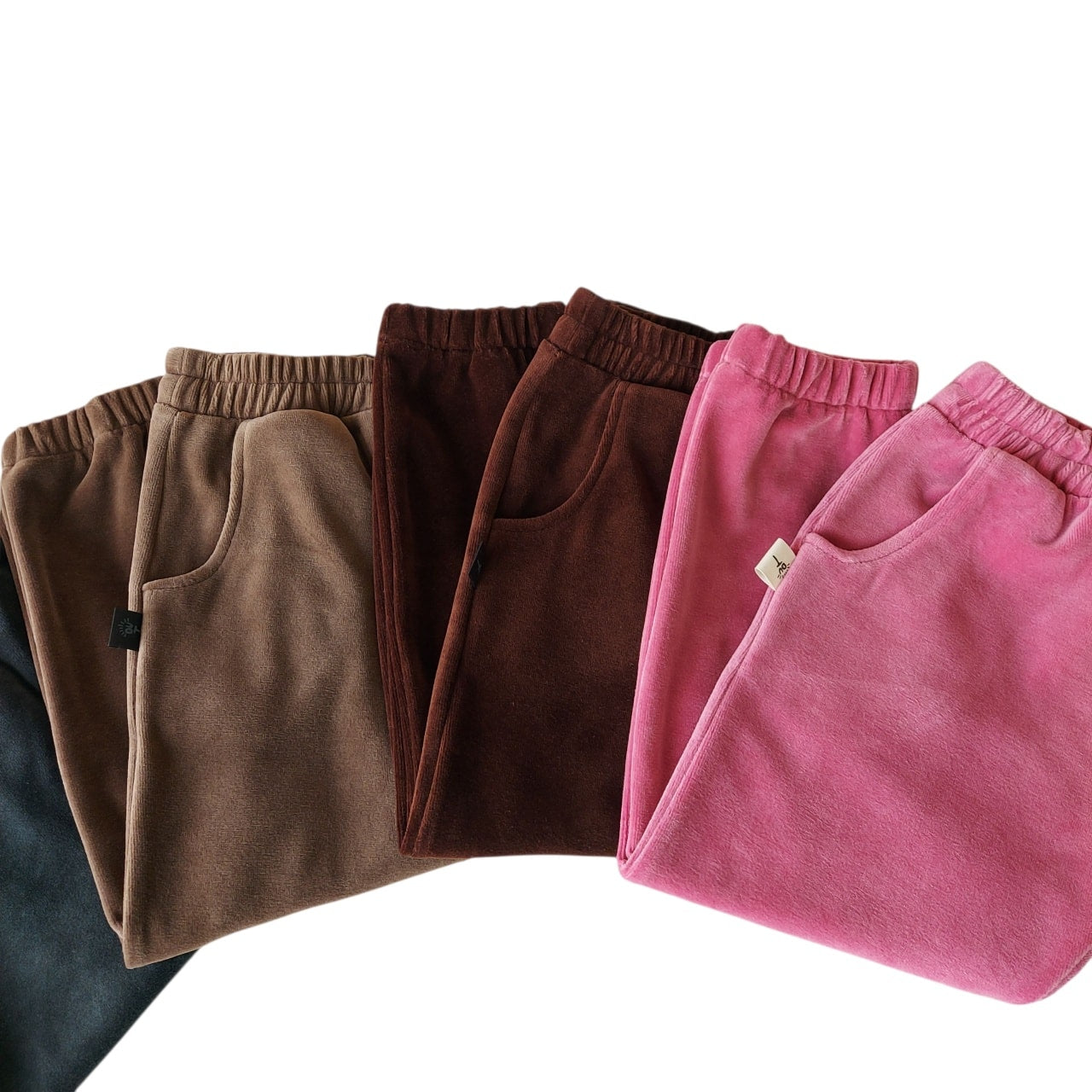 Medvilninio veliūro kelnės. . Pasiūtos iš minkšto medvilnės trikotažo, nevaržo judesių, puikiai kvėpuoja ir užtikrina komfortą visą dieną.