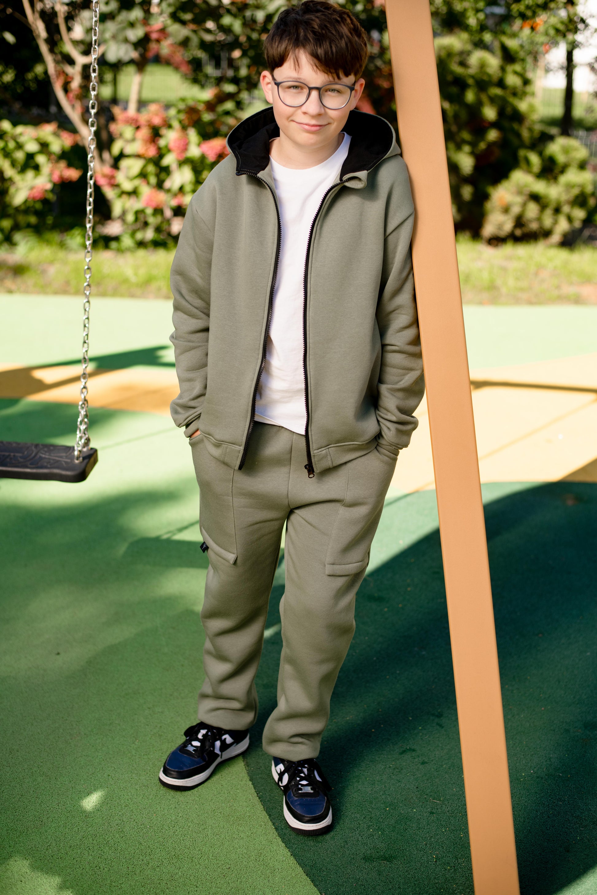 Stilingas ir praktiškas komplektas iš švelnaus trikotažo su pūkeliu – puikus pasirinkimas laisvalaikiui. Tamprus trikotažas nevaržo judesių, leidžia vaikui jaustis laisvai tiek žaidžiant, tiek ilsintis. Modelis universalus, tinka tiek berniukams, tiek mergaitėms.